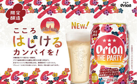 パチパチはじけるシャンパン気分の新感覚ビールテイストこころはじけるカンパイを!「オリオンザパーティー」新発売!フロントにて販売中です。ぜひ(^^)/ ※お酒...