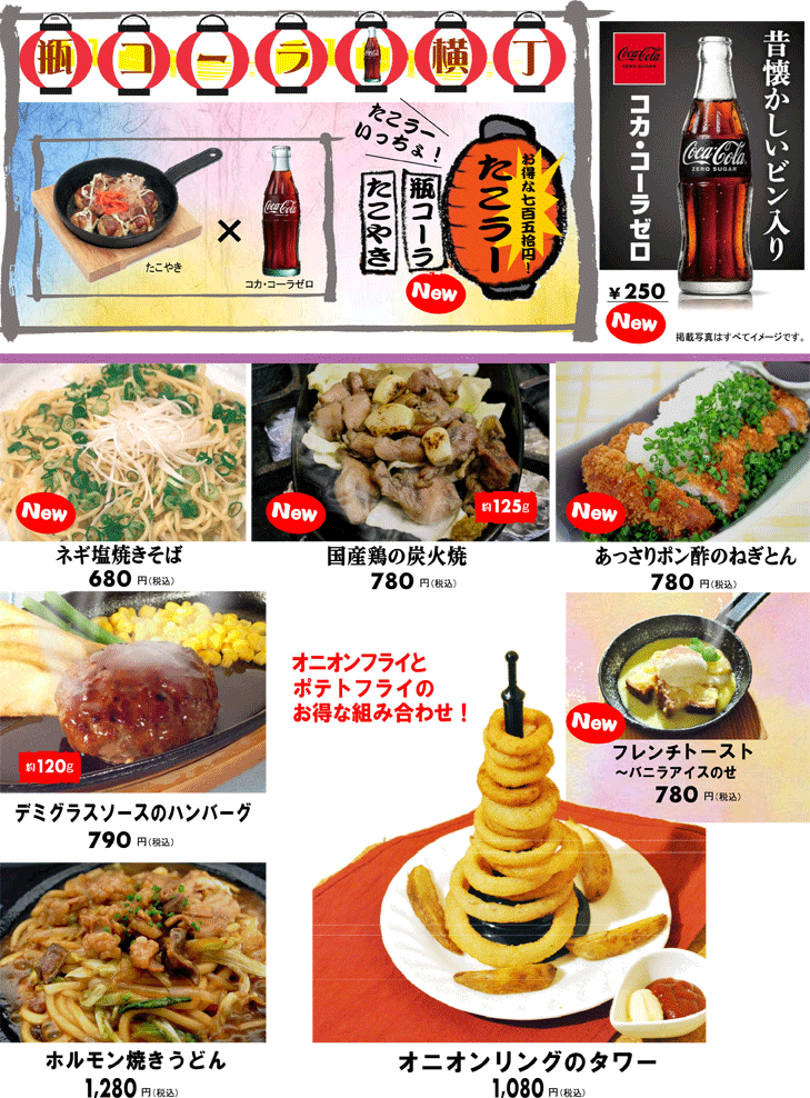 瓶コーラ横丁はじまる(^^)/たこラー(たこやき+瓶コーラ・ゼロ)がお得な750円!ぜひご賞味下さい。